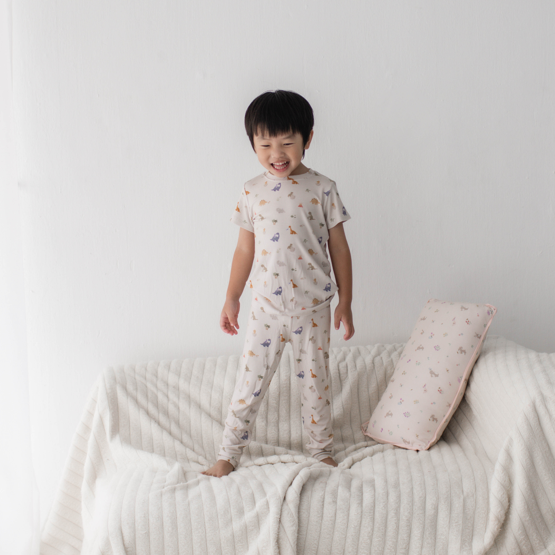 Our Two-Piece Short Sleeve PJ Set is made for little ones who love to sleep (and play!) in cool comfort. Crafted from premium ribbed bamboo fabric, it’s luxuriously buttery-soft, breathable, and gentle on delicate skin — perfect for Singapore’s warm climate.